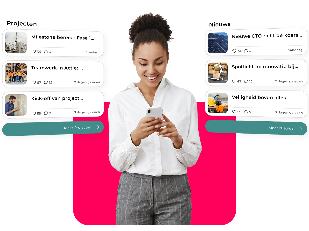 Ontvang bedrijfsupdates en successen direct in de nieuwsfeed van TeamApp. Van interne nieuwtjes tot bedrijfsprestaties, blijf op de hoogte en versterk de teamspirit.